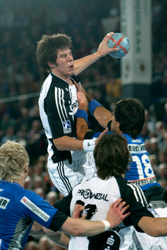 | Baur stoppt Ahlm. | Kim Andersson wird attackiert. | Nikola Karabatic wird attackiert. | Henrik Lundström. | |||