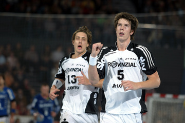 | Vid Kavticnik. | Carsten Lichtlein. | TBV-Trainer Volker Mudrow. | Filip Jicha. | |||