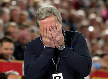 | Noka Serdarusic schlägt die Hände vor das Gesicht. | Kieler Freude. | Kieler Freude. | Staffan Olsson und Fredrik Larsson. | |||