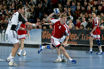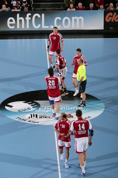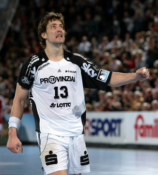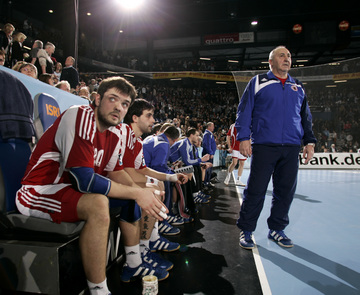 | Omeyer und Serdarusic. | Moskaus Trainer Vladimir Maximov. | Dominik Klein wird attackiert. | Nikola Karabatic greift an. | |||