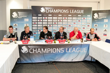 | Vor dem Anwurf. | Thierry Omeyer im Eurosport-Interview. | Spielszene. | Pressekonferenz. | |||
