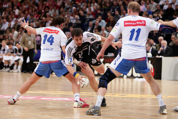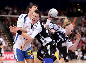 | Marcus Ahlm. | Stefan Lövgren am Kreis. | Die Colorline-Arena. | Marcus Ahlm. | |||