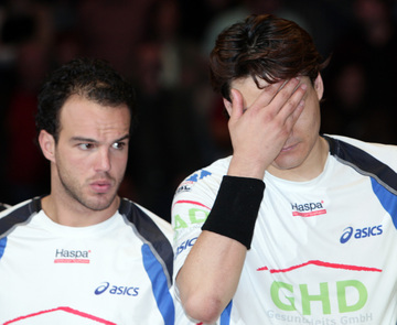 | Der HSV wurde Vize-Pokalsieger. | Abklatschen der Teams. | Der DHB-Pokal. | Enttäuschung beim HSV. | |||
