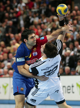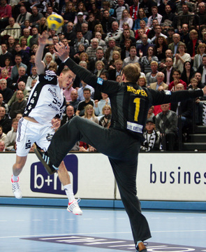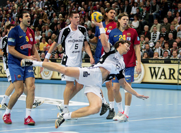 | Nikola Karabatic. | Ruben Garabaya und Nikola Karabatic. | Marcus Ahlm. | Dominik Klein gegen Kasper Hvidt. | |||