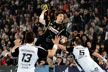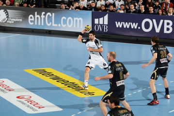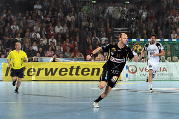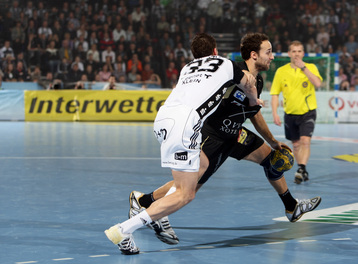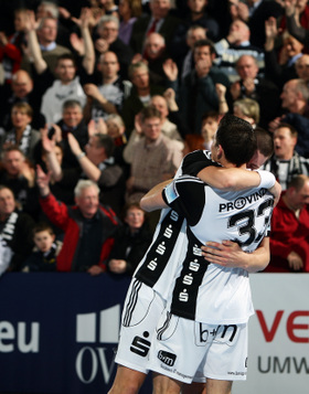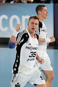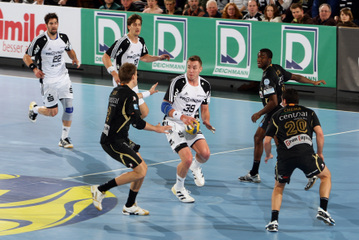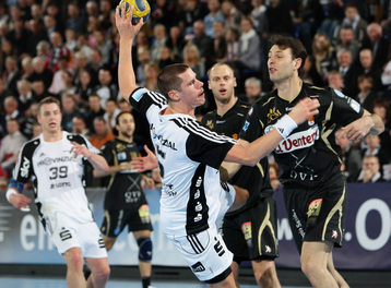 | Nikola Karabatic. | Beeindruckende Kulisse. | Jonas Källman. | Spielszene. | |||