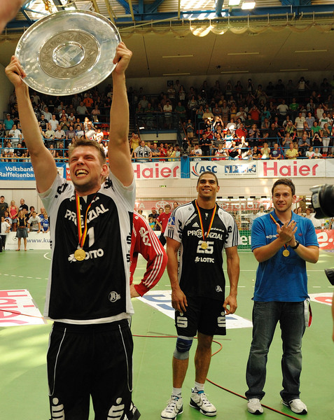 | Deutscher Meister 2010! | Bayerns Ministerpräsident Horst Seehofer ehrt den Deutscher Meister Alfred Gislason. | Deutscher Meister 2010! | Spielszene. | |||