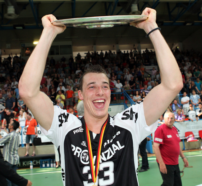 | Auch Jubel beim TVG, der den Europacup erreicht hat. | Bayerns Ministerpräsident Horst Seehofer ehrt den Deutscher Meister Dominik Klein. | Deutscher Meister 2010! | Deutscher Meister 2010! | |||
