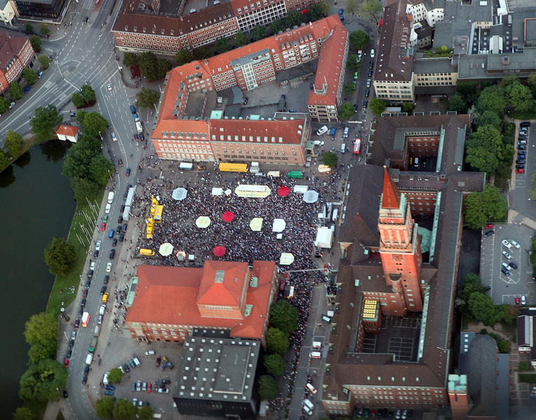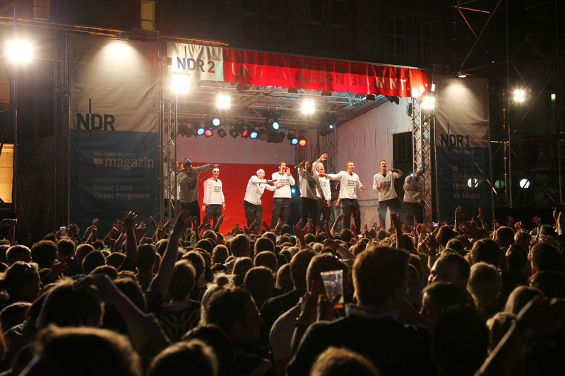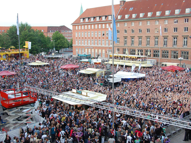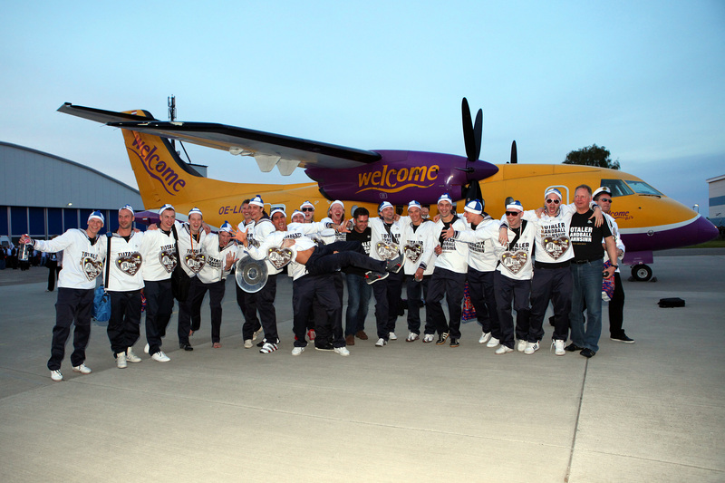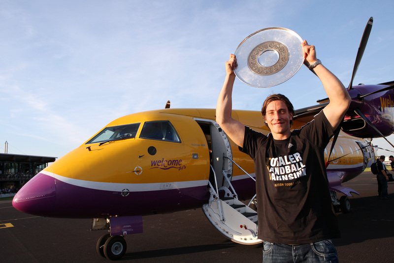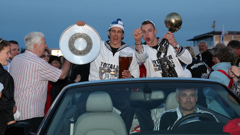 | Deutscher Meister 2010! | Flug nach Kiel. | Ehrenrunde über dem Rathausplatz. | Flug nach Kiel. | |||