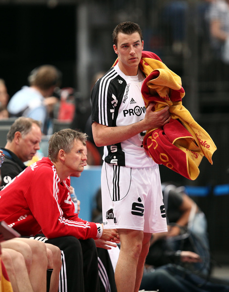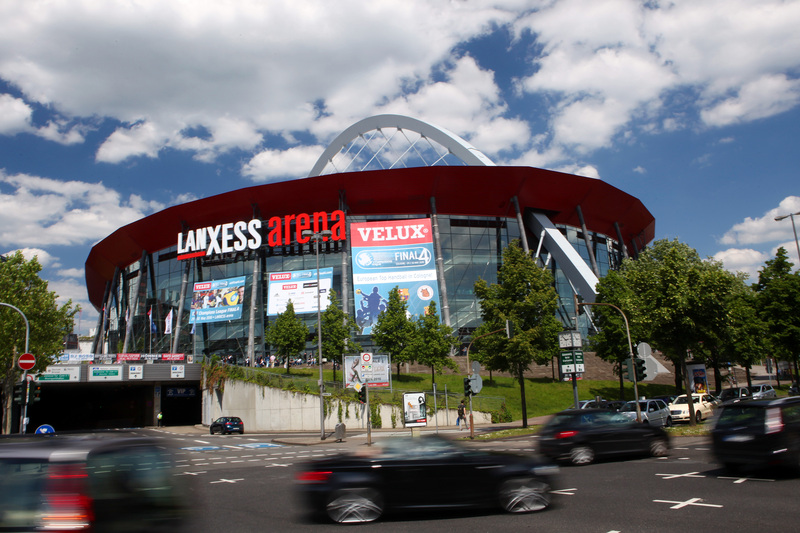 | EHF-Generalsektretär Wiederer und EHF-Präsident Lian. | Die Lanxess arena in Köln. | Einlauf der Teams. | Didier Dinart attackiert Christian Zeitz. | |||