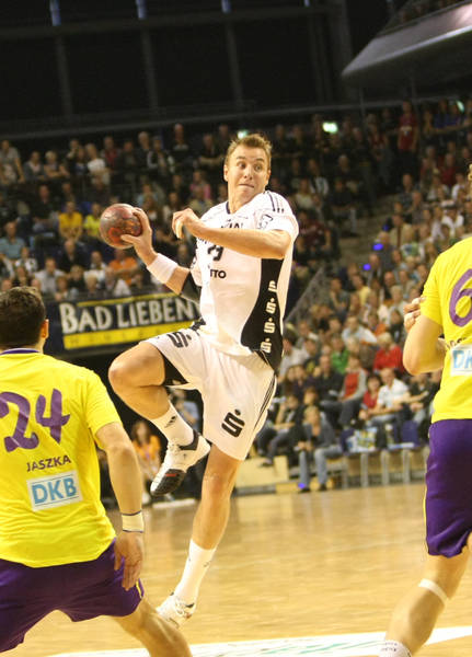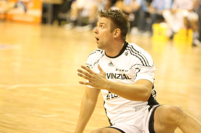 | Filip Jicha. | Marcus Ahlm am Kreis. | Christian Zeitz in der Luft. | Auszeit. | |||