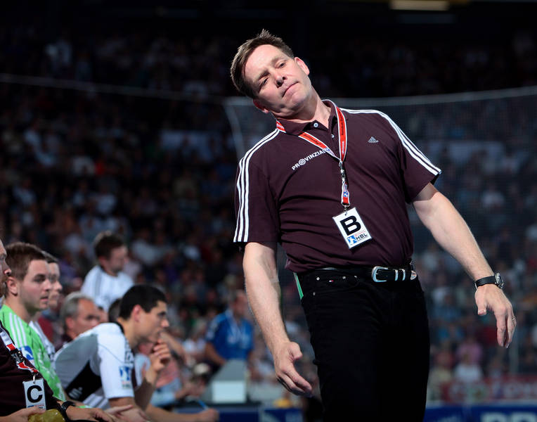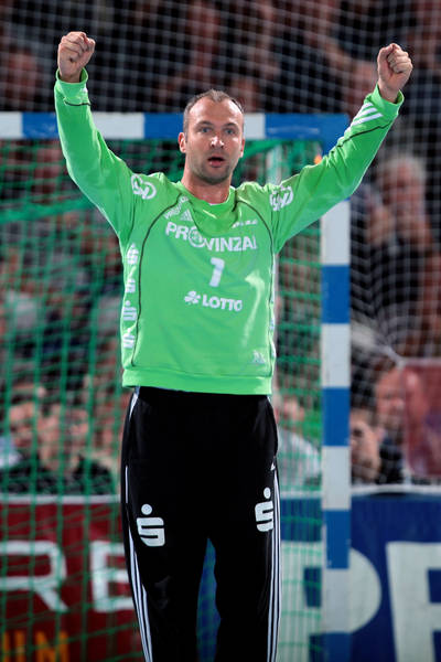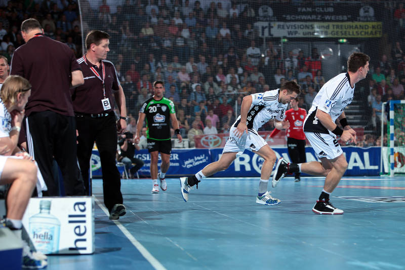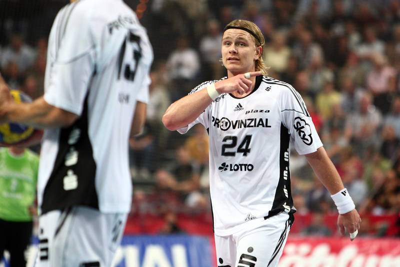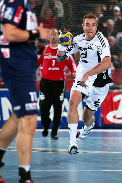 | Thierry Omeyer. | Florian Kehrmann, Sebastian Preiß und Christoph Theuerkauf auf der Tribüne. | Aron Palmarsson. | Momir Ilic. | |||