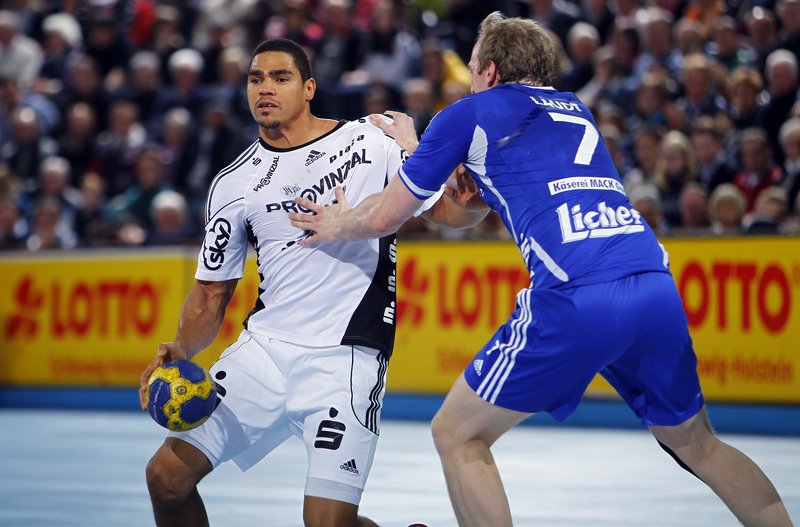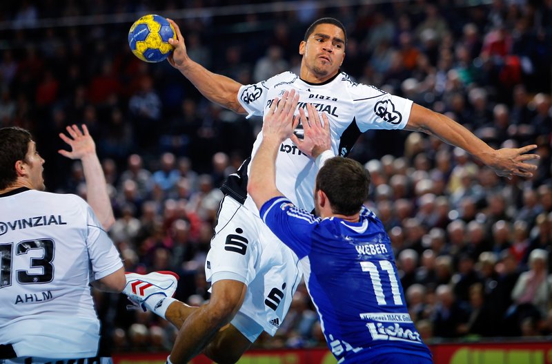 | Alfred Gislason. | Florian Billek gegen Henrik Lundström. | Timm Schneider. | Andreas Palicka und Thierry Omeyer. | |||
