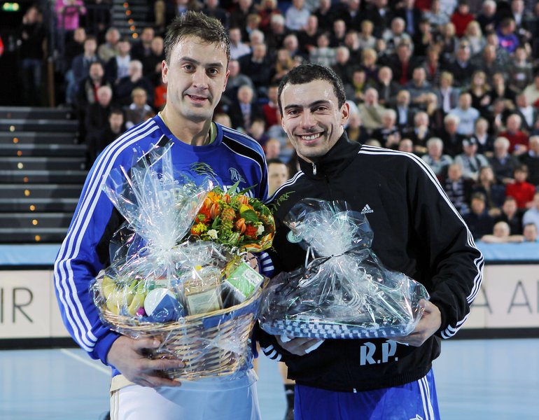 | Daniel Narcisse. | Christian Sprenger. | Marcus Ahlm. | Die serbischen Nationalspieler Momir Ilic und Rajko Prodanovic werden für EM-Silbwer geehrt. | |||