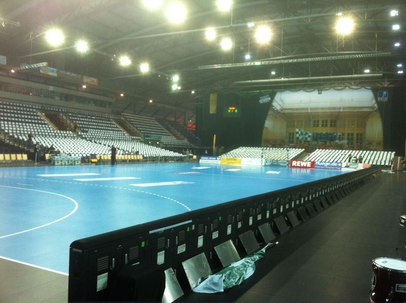 | Vor dem Spiel. | Vor dem Spiel. | Die Kieler Bank. | Volle Halle in Leipzig. | |||