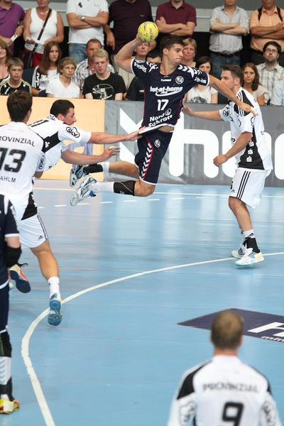 | Aron Palmarsson. | Daniel Narcisse. | Spielszene. | Supercup-Sieger 2012! | |||