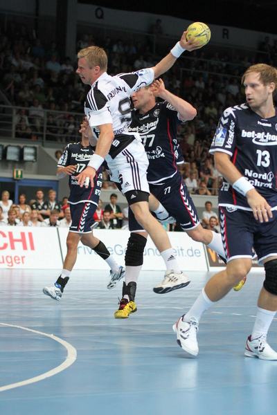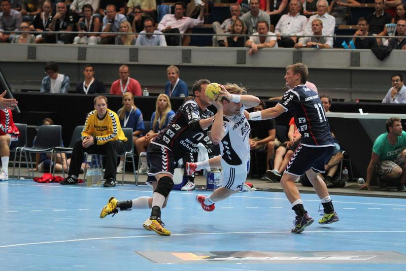 | Supercup-Sieger 2012! | Marcus Ahlm wird von Tobias Karlsson und Thomas Mogensen attackiert. | Christian Zeitz. | Abwehrarbeit. | |||