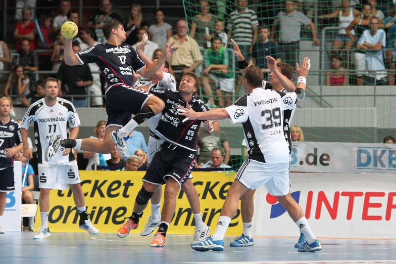 | Christian Zeitz. | Spielszene. | Patrick Wiencek. | THW-Fans. | |||