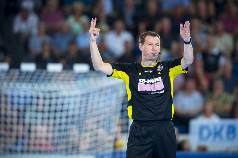 THW-Hallensprecher Thomas Lorenzen. Duje Miljak. Enttäuschung nach dem Spiel. Schiedsrichter Jörh Mahlich.