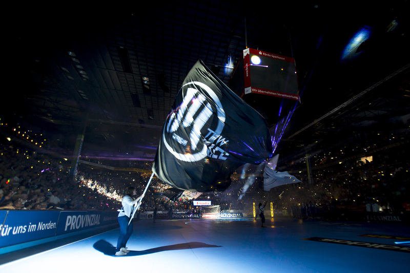 Spielszene. THW! Rasmus Lauge. THW-Hallensprecher Thomas Lorenzen.
