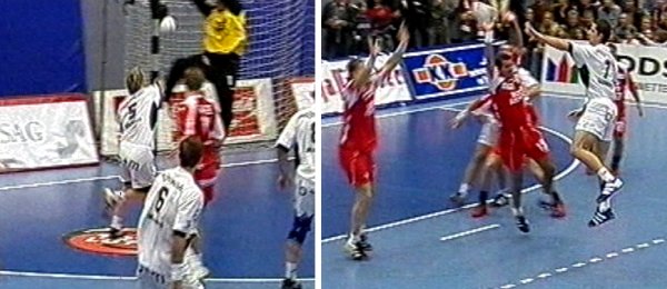 Doch auch die Hausherren blieben im Angriff einiges schuldig. Der gerade von einer Schulterverletzung genesene Ljubomir Vranjes fiel lediglich durch seine krummen Säbelbeine auf. So stand die Partie im Zeichen der beiden Abwehrreihen, die zusammen mehr als 1500 Länderspiele auf die Waage brachten. Sehenswert in Durchgang eins war lediglich ein sensationelles Anspiel von HSG-Keeper Peter Gentzel, der im Sitzen seinen Rechtsaußen Jan Filip auf die Reise schickte. Der Tscheche traf zum 9:6, Serdarusic nahm eine Auszeit. Kiel kämpfte sich mit Einzelleistungen immer wieder heran, glich zur Pause durch Johan Pettersson zum 13:13 aus. Der Ex-Nordhorner warf alle fünf Tore in Halbzeit eins.