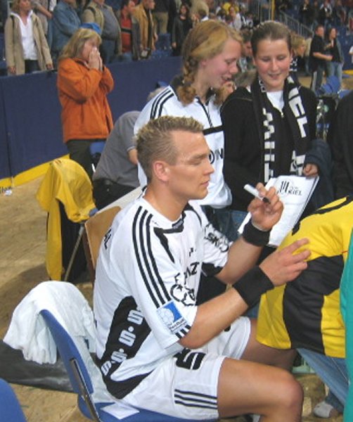 Doch wie ein Meister spielten die Kieler in der mit knapp 5400 Zuschauern nur halb gefüllten TUI-Arena in den ersten 40 Minuten wahrlich nicht auf. Unkonzentriert in der Abwehr, fahrig im Angriff - nur die Trikots erinnerten an jenes Team, das in den letzten 25 Liga-Spielen lediglich zwei Punkte abgab. Vor allem GWD-Keeper Fredrik Ohlander spielte auf, als hätten ihm die Flensburger im Erfolgsfall ein Haus mit Fördeblick versprochen. Der schwedische Nationaltorhüter parierte schon vor der Pause zwölf Bälle und als Sahnehäubchen zwei Siebenmeter von Johan Pettersson und Henrik Lundström. Sein Gegenüber Henning Fritz, vor dem Spiel noch mit Sonderapplaus und einem Blumenstrauß als Welthandballer geehrt, bekam dagegen zunächst keine Hand an den Ball. Er hätte allerdings auch die Kraken eines Tintenfisches benötigt, um alle Löcher in seiner Abwehr zu stopfen.