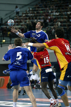 | QS-Supercup: Das schwedische Siegerteam. | QS-Supercup: Christian Zeitz. | QS-Supercup: Julio Fis - inzwischen für die spanische Nationalmannschaft aktiv. | QS-Supercup: Henning Fritz im deutschen Tor. | |||