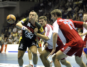 | QS-Supercup: Marcus Ahlm setzt sich durch. | QS-Supercup: Henrik Lundström. | QS-Supercup: Nikola Karabatic spielt ab. | QS-Supercup: Nikola Karabatic wird von Martin Boquist angegriffen. | |||