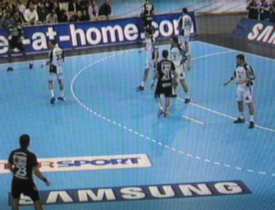 Mittlerweile war auch Nikola Karabatic auf dem Parkett und verlieh insbesondere der Deckung noch mehr Halt. Die Zebras verwalteten den Vorsprung nun souverän, auf die mühsam erarbeiteten Tore Chamberys wussten Kim Andersson & Co. stets eine postwendende Antwort. So bauten die Kieler die Führung bis zur 28. Minute gar auf 18:12 aus - obwohl auch sie immer wieder große Chancen ausließen. Während Jackson Richardson mittlerweile auf der Ersatzbank Platz nahm, griff Stefan Lövgren kurz vor dem Pausenpfiff noch einmal in seine große Trickkiste: Seinen Kempapass auf Linksaußen konnte Henrik Lundström leider nicht nutzen und traf nur die Latte, so dass es mit einer dennoch beruhigenden 19:14-Führung in die Kabinen ging.