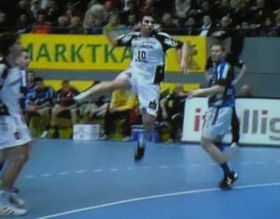 So starteten die Kieler mit dem Rücken zur Wand. Doch aggressiv in der Abwehr und beweglich im Angriff hatten sie schnell das Heft des Handelns in der Hand. Dass der TBV in der ersten Halbzeit ständig auf Tuchfühlung blieb, lag vor allem an dem 37-jährigen Christian Schwarzer, der seine WM-Form konserviert hat und die Kieler Hinterreihe in Atem hielt. Ohne Fortune blieb dabei THW-Schlussmann Thierry Omeyer, Serdarusic beorderte Mattias Andersson schon nach zwölf Minuten ins Geschehen. Überragender THW-Spieler war der "Chef" persönlich. Stefan Lövgren führte klug Regie, kämpfte wie ein Löwe, traf zehn Mal aus allen Lagen und sorgte auch in der Schlussphase, als den Kielern der Erfolg noch aus den Fingern zu gleiten drohte, für die entscheidenden Treffer in dieser Partie.