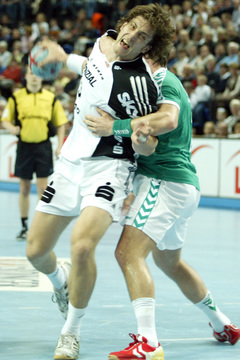 Beim Stand von 7:6 (15.) erinnerte sich Serdarusic an den famosen Auftritt von Dominik Klein am Mittwoch in Melsungen und beorderte seinen Linksaußen abermals an die Spitze einer 5:1-Abwehrformation. Mit nachhaltigem Erfolg. Die Gegenstöße, die Klein dem THW durch seine ständigen Störmanöver ermöglichte, und seine eindrucksvolle Trefferquote ließen den Vorsprung auf ein komfortables 16:9 (25.) wachsen. Mittwoch zwölf Tore, gestern neun - der THW-"Youngster" sprüht derzeit förmlich vor Spielfreude. Außerdem fanden Nikola Karabatic' Anspiele immer öfter die Hände von Marcus Ahlm (6), dem die Mindener als Dank zwei Trikots innerhalb von fünf Minuten zerrissen.