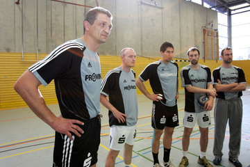 | Erstes Training in Russee: Andrei Xepkin beim Warmmachen. | Erstes Training in Russee: Andrei Xepkin beim Warmmachen. | Erstes Training in Russee: Uwe Schwenker begrüßt Andrei Xepkin. | Erstes Training in Russee: Andersson dolmetscht zwischen Serdarusic und Xepkin. | |||