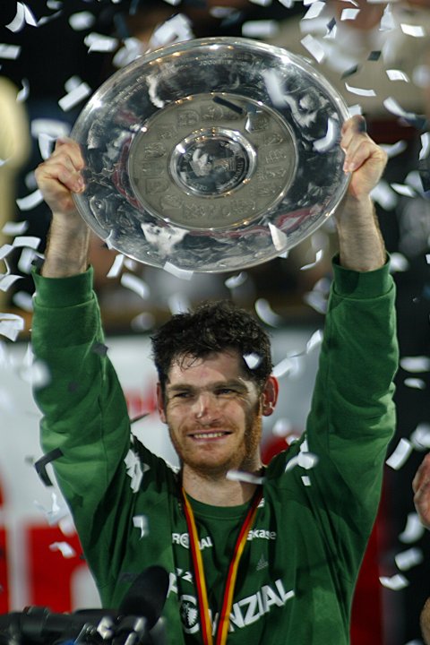 Deutschen Handballbundes, entgegen nahm und sie zur Hallendecke reckte, war es