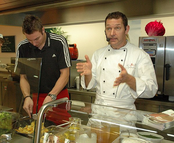 momentan verletztes Zebra, stand gemeinsam mit Star-Biokoch Alfred Fahr am Wok - und wusste