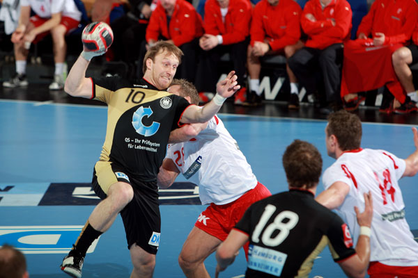 Heiner Brand verzichtete erneut auf die angeschlagenen Christian Zeitz, Florian Kehrmann und Pascal Hens und ließ Teile der vermeintlich "zweiten Garde" um Johannes Bitter und Dominik Klein beginnen. Den Anwurf hatten die Dänen, die ihrerseits auf Joachim Boldsen verzichteten, dafür aber mit Lars Krogh Jeppesen ein altbekanntes Gesicht von Beginn an aufs Parkett schickten. Doch gleich im ersten Angriff der Gäste machte eine Person auf sich aufmerksam, die der gesamten Partie seinen Stempel aufdrückte: Johannes Bitter parierte gleich die ersten zwei Würfe von Jensen und Boesen, im deutschen Angriff nutzten Klimovets am Kreis sowie ein toller Gegenstoß von Klein für die frühe 2:0-Führung.