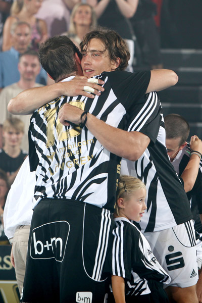 Abschied von Stefan Lövgren: Dominik Klein und sein Kapitän.