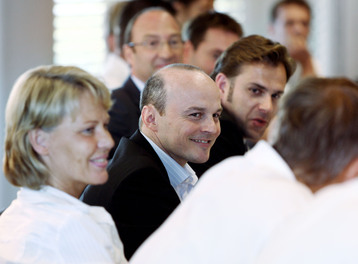 Lang war die Tafel, an der die zahlreichen Neuzugänge, die THW-Geschäftsführer Uli Derad und Sabine Holdorf-Schust, Pressesprecher Björn Goos und die Ausichtsratsmitglieder Platz genommen hatten. Erstmals war auch Marcus Ahlm in seiner neuen Funktion als Kapitän mit von der Partie. Nach den Begrüßungsworten von Provinzial-Vertriebsvorstand Matthew Wilby, der den im Urlaub weilenden Ulrich Rüther vertrat, gab Ahlm sein Statement zur neuen Saison ab. "Die Neuzugänge passen sehr gut zu unserer Truppe", sagte der Kapitän. "Wir haben viel trainiert, werden das Augenmerk in den nächsten Tagen vermehrt auf taktische Elemente legen. Wir wollen uns als Mannschaft weiter entwickeln, denn nur dadurch kommt der Erfolg." Mit seiner neuen Rolle, so Ahlm, habe er sich indes intensiv auseinandergesetzt. "Ich habe jetzt mehr Verantwortung, ich freue mich darauf. Ich spiele seit sechs Jahren in Kiel, kenne das Umfeld und den Verein. Nun hoffe ich, dass auch die Spieler mit mir zufrieden sind."