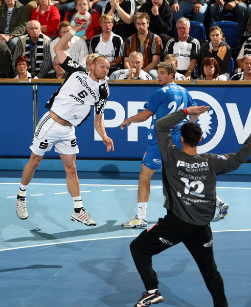 Also durfte Momir Ilic beginnen. Der Serbe knallte den Ball an den Pfosten. Anschließend scheiterte Filip Jicha an Goran Stojanovic, dann Christian Sprenger am Pfosten. In der Halbzeit disponierte Gislason um, ernannte Lundström wieder zum Siebenmeterschützen. "Alfred hat ein gutes Gespür für solche Situationen", meinte Lundström, der gerne gegen ausgewiesene Siebenmeter-Killer wie Stojanovic antritt. "Mir hilft es zu wissen, dass die Torhüter richtig gut sind. Dann bin ich konzentrierter." Wie gut, das konnte er nicht zeigen, wurde dem THW doch in der zweiten Halbzeit kein Strafwurf zugesprochen.