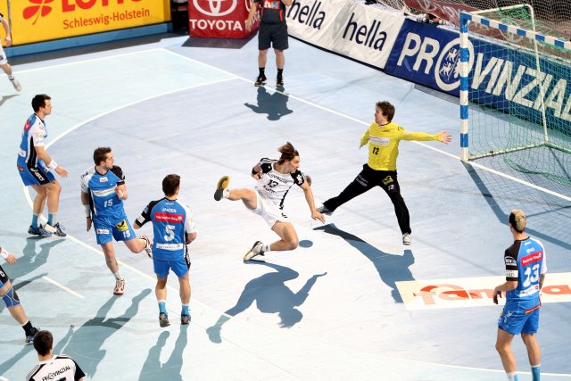 Bis zum 4:4 in der achten Minute ging es hin und her, Hens, Vori und Marcin Lijewski trafen für Hamburg, Ahlm und Jicha glichen mit ihren Doppelpacks aus. Dann fassten die Gäste Tritt, Kiels Tempospiel kam nicht in Fahrt, der Rückraum tat sich gegen die aggressive 3:2:1-Deckung schwer, die Außen wurden vernachlässigt. Außerdem fand der eigene Deckungsverband keine Bindung zu Torhüter Thierry Omeyer. Die Folge: 8:12 nach 20 Minuten. Hamburg wirkte abgeklärter, Jicha und Co. suchten nach der Tür zum Tor. 13:17 stand es nach 27 Minuten, als der Kieler Knoten platzte und Hamburgs Tormaschinerie Fehler produzierte. "Wühler" Marcus Ahlm, Christian Zeitz mit Einzelleistung und Momir Ilic mit Wucht: Der THW war zur Halbzeit wieder dran. 16:17.