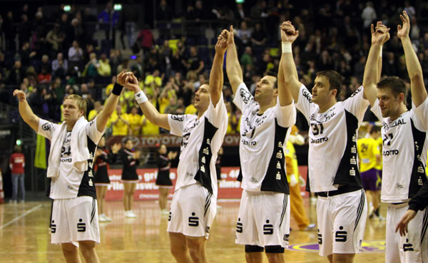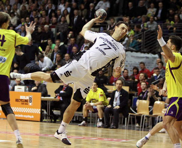 Seit dem 17. Februar 2010 sind die Berliner in ihrer Max-Schmeling-Halle, die sie gerne Fuchsbau nennen, ungeschlagen. 378 Tage ohne Heimniederlage. Eine stolze Zahl. Eine, die die Kieler offensichtlich nicht schrecken konnte. Sie bewiesen auch in der Festung des Tabellendritten, dass sie die Mannschaft der Stunde im europäischen Handball sind. Die Abwehr stand, als wären die sechs "Zebras" zu einer schwarz-weißen Wand verwachsen. Und im Angriff unterliefen dem Team von Alfred Gislason nur wenig Fehler. Allein Alexander Petersson hielt die Füchse in der Partie. Von den ersten acht Toren warf er fünf.