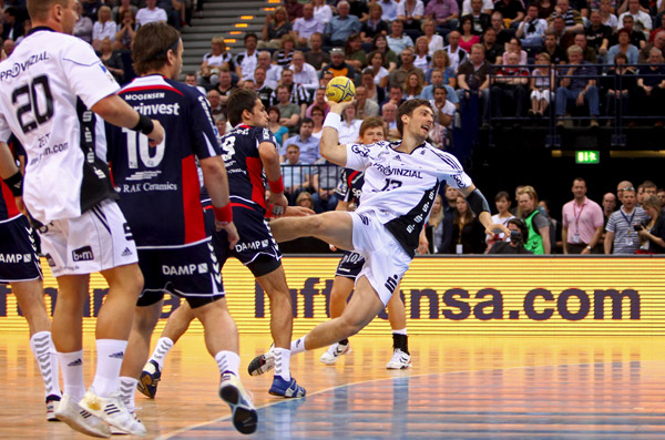 Ohne Rücksicht auf Größenunterschiede sprangen sich der zierliche Henrik Lundström und der bullige Daniel Kubes in die Arme, Filip Jicha spielte Brummkreisel mit seinem Freund Daniel Narcisse und für Christian Zeitz hagelte es Küsse. Kapitän Marcus Ahlm drückte dem überragenden Linkshänder einen Schmatzer auf die Wange, Kumpel Christian Sprenger wählte dafür die Stirn des 30-Jährigen, der zurecht zum besten Spieler des Pokalwochenendes gewählt worden war. Der beste Torschütze war er auch. Fünfmal hatte er im Halbfinale tags zuvor gegen Göppingen (28:23) getroffen, sechsmal im Endspiel, in dem er neben Thierry Omeyer, Dominik Klein, Filip Jicha und Aron Palmarsson zu den herausragenden Kräften einer starken Kieler Mannschaft zählte.