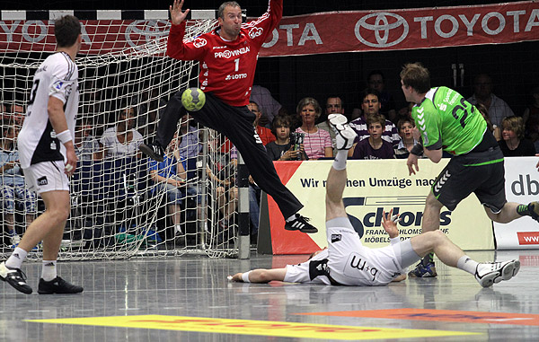 Nach dem Seitenwechsel kehrte endlich wieder spielerische Linie ein bei den "Zebras" - allerdings vergaßen sie dabei das Torewerfen. Christian Sprenger scheiterte am jetzt unüberwindbaren Puljezevic ebenso wie Daniel Narcisse und gleich mehrfach Dominik Klein. So ging Hannover durch den einzigen Treffer Przybeckis und den immer mehr aufdrehenden Morten Olsen mit 13:11 in Führung. Selbst in Überzahl - Rydergard hatte nach Foul an Ahlm seine zweite Zeitstrafe erhalten - und mit neuem Personal (Zeitz, Palmarsson und Lundström) wollte den Kielern kein Treffer gelingen. Kurios die Szene in der 36. Spielminute: Nenad Puljezevic parierte einen harten Wurf von Christian Zeitz, ließ ihn aber nach vorne zu Marcus Ahlm abtropfen, doch auch dieser konnte den im Tor sitzenden Ungarn nicht überwinden. Stattdessen erhöhten die Niedersachsen gegen die insgesamt gut eingestellte 6:0-Deckung der Kieler durch einen weiteren Schlagwurf Olsens gar auf 14:11. Die Zuschauer in der AWD-Hall und auch die Gastgeber wähnten sich langsam auf dem Weg zur Sensation.
