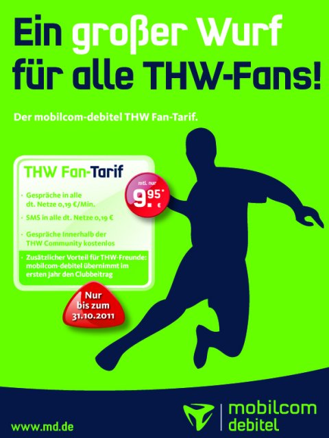 Besonders freuen können sich Mitglieder des "THW Freunde"-Clubs und diejenigen, die es noch werden wollen: Alle, die sich bis zum 31. Oktober für den "THW Fan-Tarif" von mobilcom-debitel entscheiden, bekommen zusätzlich ein ganzes Jahr lang die Kosten für die Club-Mitgliedschaft erstattet.