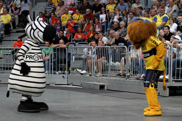 "Conny", der Löwe und "Hein Daddel", das Zebra, liefen anschließend stundenlang durch die Innenstadt, um Werbung für das Punktspiel zu machen. "Wir hätten die Aktion in jedem Fall gemacht", sagte Ute Krebs, Pressesprecherin der Löwen. Soll heißen, die Maskottchen hätten sich am Wasserturm auch dann einen Wettstreit geliefert, wenn die Halle ausverkauft gewesen wäre.
