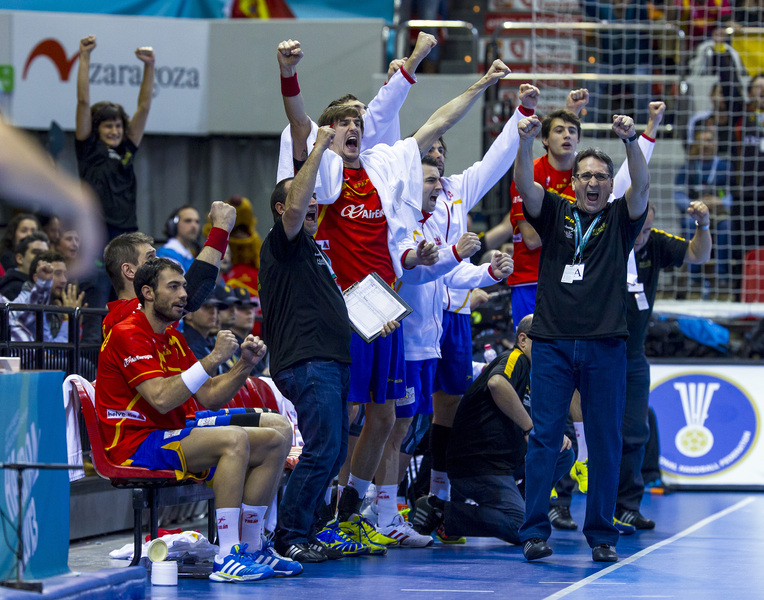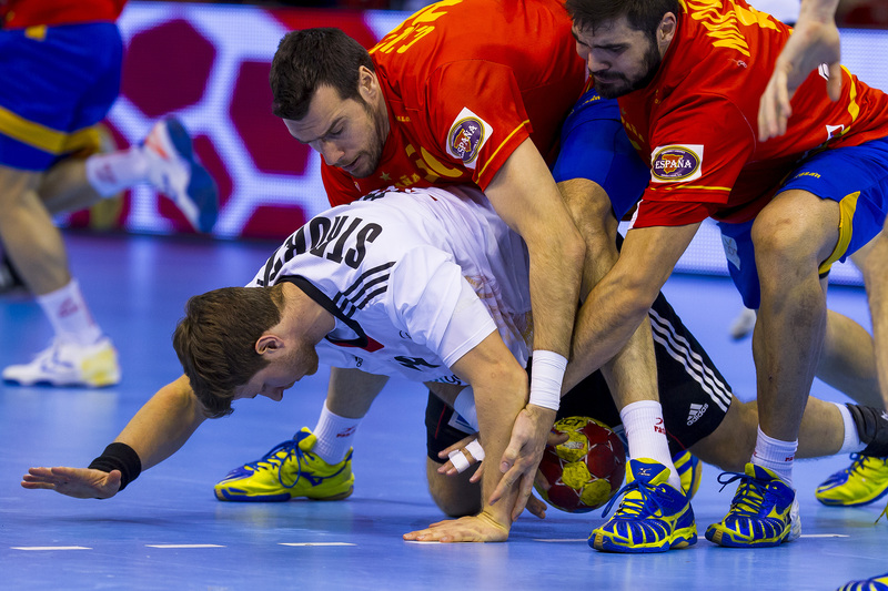 Die Spanier hatten nichts unversucht gelassen, um die Deutschen aus dem Tritt zu bringen. Während sie sich aufwärmten, lief auf dem Videowürfel über ihnen noch einmal der Kantersieg der Gastgeber im Achtelfinale gegen Serbien ab. Doch die Schützlinge von Martin Heuberger zeigten sich unbeeindruckt, auch nach dem Anpfiff. Mit Herz und auf schnellen Beinen traten sie an, in Silvio Heinevetter hatten sie einen guten Rückhalt. Dagegen fand der bullige Arpad Sterbik nicht ins Spiel. Als Michael Haaß durch seine stämmigen Beine hindurch das 7:5 für die Deutschen erzielte, nahm Valero Rivera den Hünen vom Feld. Wie sich am Ende herausstellen sollte, hatte er mit dem relativ unbekannten Jose Sierra den Matchwinner e ingewechselt.
