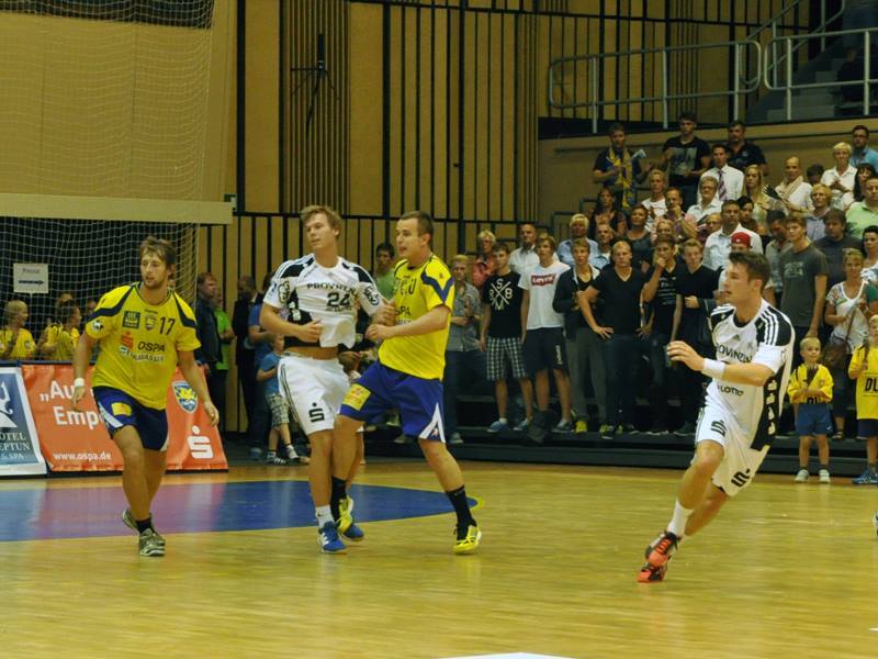 Die Einheimischen, die mit Torjäger Tom Wetzel (Wadenbeinbruch) und Roman Becvar (muskuläre Probleme) zwei Leistungsträger ersetzen mussten, begannen erstaunlich selbstbewusst. Eine 12:8-Führung des HC Empor nach 16 Minuten war aus Kieler Sicht ganz bestimmt nicht eingeplant. Über ein 17:17 (26.) quälte sich der THW mit einer 21:19-Pausenführung in die Kabine - nicht zuletzt weil die jungen HCE-Akteure im 1:1-Spiel ein ums andere Mal zu viel Ehrfrucht zeigten.