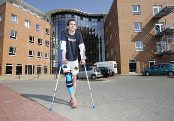 | THW-Mannschaftsarzt Dr. Frank Pries erklärt Viktor Szilagyi, der auf einer Behandlungsliege liegt, anhand eines Modells die Verletzung im Knie. | THW-Mannschaftsarzt Dr. Frank Pries untersucht Viktor Szilagyi nach seiner Operation am Knie zur Kontrolle. | THW-Mannschaftsarzt Dr. Frank Pries erklärt Viktor Szilagyi, der auf einer Behandlungsliege liegt, anhand eines Modells die Verletzung im Knie. | Warten und Geduld ist jetzt angesagt: Viktor Szilagyi sitzt vor seinem Arzt-Besuch im Wartezimmer des Mare Klinikum in Kronshagen. | |||