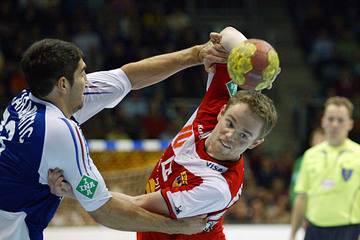 | WM 2007: NOR - HUN: Preben Vildalen und Börge Lund. | WM 2007: NOR - HUN: Börge Lund in der Deckung. | WM 2007: NOR - HUN: Börge Lund sah nach einem Foul Laszlo Nagy die rote Karte. | WM 2007: FRA-UKR: Nikola Karabatic. | |||