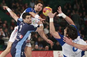 | WM 2007: GER-TUN: Fritz und Jansen. | WM 2007: GER-TUN: Henning Fritz. | WM 2007: FRA-SLO: Nikola Karabatic. | WM 2007: FRA-SLO: Nikola Karabatic. | |||