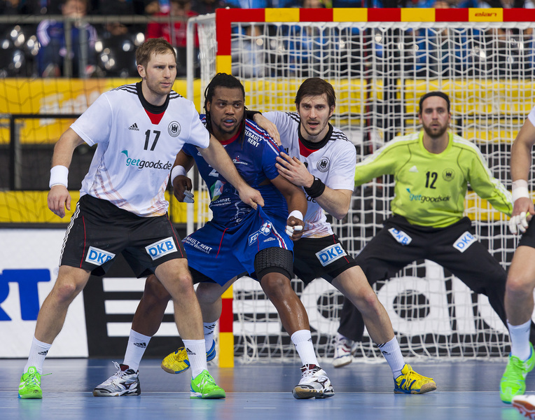| WM 2013: GER-FRA: Jerome Fernandez. | WM 2013: GER-FRA: Jerome Fernandez. | WM 2013: GER-FRA: Daniel Narcisse. | WM 2013: GER-FRA: Heinevetter gegen Abalo. | |||