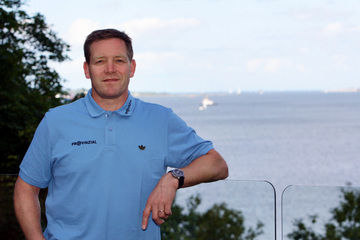 | Alfred Gislason vor dem Kieler Landtag. | Alfred Gislason vor dem Kieler Landtag. | Alfred Gislason am Kieler Hindenburg-Ufer, im Hintergrund die "Color Magic". | Alfred Gislason am Kieler Hindenburg-Ufer, im Hintergrund die "Color Magic". | |||